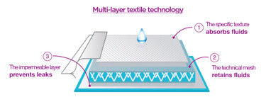 Its multilayer textile technology has been designed to absorb the equivalent of 3 normal-size tampons*.